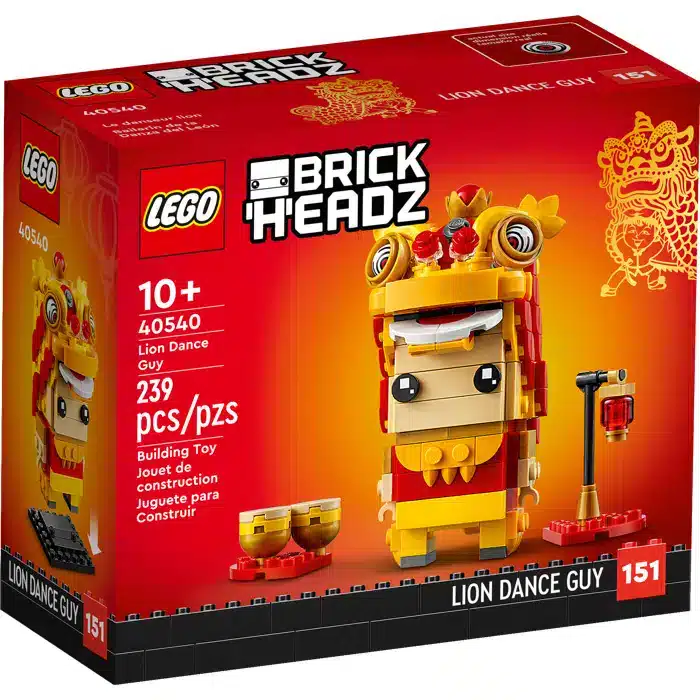 Celebrate Chinese New Year with the fun LEGO® BrickHeadz™ Lion Dance Guy (40540). This colorful and brilliantly decorated model has been inspired by the traditional Chinese lion dance and features a movable mouth to change the lion’s expressions. It is accompanied by 2 drums and a red lantern and can be displayed on its baseplate or played with by kids aged 10 and up.
